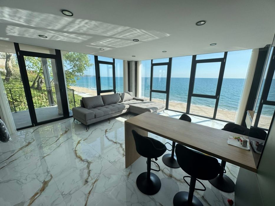 Продава се прекрасен 3 стаен апартамент с уникално разпределение в тихото и спокойно градче Обзор. Апартамента е с следното разпределение : Голяма и слънчева всекидневна с директна гледка към морето , спалня с излаз на тераса , баня с тоалетна и още едно огромно помещение което е разделено на дневен кът с кухненски бокс , спалня и баня с тоалет. С разпределението си , жилището е подходящо и за инвестиция , може да се отдава под наем като два отделни апартамента ( двустаен и едностаен ) . Сградата в която се намира е луксозна и е разположена на първа линия на централния плаж в града . Разполага със собствена спа зона с вътрешен басейн която работи целогодишно и виншен басейн на самия плаж.