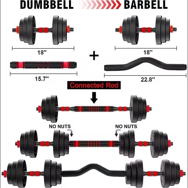 Пълен комплект тежести, позволяващ изпълнение на богат набор от упражнения натоварващи всяка мускулна група. Благодарение на възможността за регулиране на килограми (до 30 кг) можете ефективно да натоварите бицепс, трицепс, делтовидни мускули, както и гърди, гръб или долна част на тялото (крака, дупе). Свързващият елемент позволя да съедините дъмбелите в лост с дължина 1.20см.