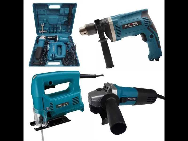Комплектът Съдържа – Флекс/Ъглошлайф 1200W + Бормашина 1400W + Зеге/Пробивен трион 1200W + Аксесоари + Куфар