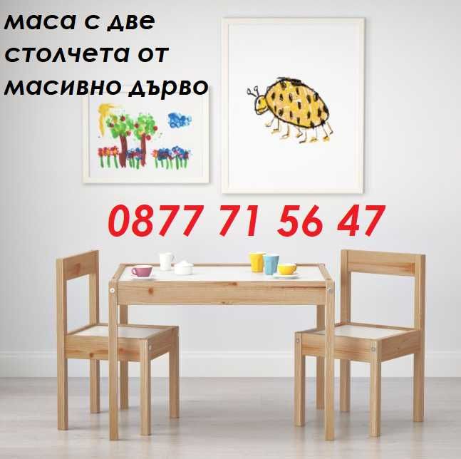 – Детски комплект маса с две столчета от масивно дърво – ТОП ЦЕНА – 84.99лв