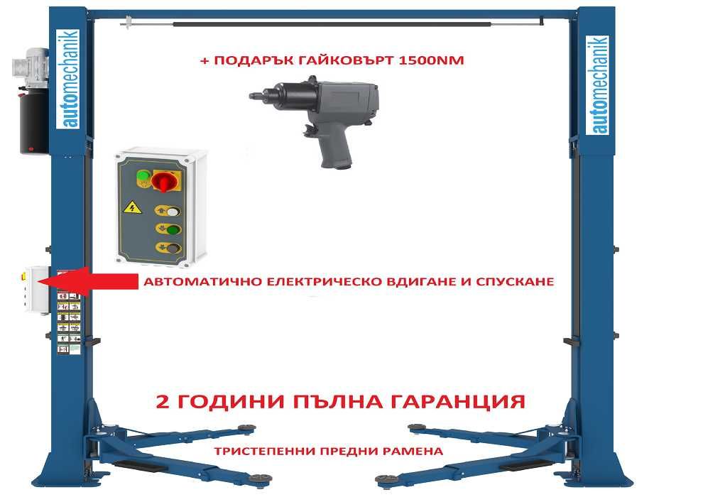 Товароподемност: 4000 кг. Подемниците са чисто нови! Конструкция от 18мм висококачествена стомана (на петите). Гарантирано най-добрата цена за нов такъв подемник в страната! Директен вносител на подемници от Европа. Ние сме единиственият вносител в страната, който предлага пълна гаранция от 24 месеца и реакция за сервиз и монтаж до 24 часа. Извънгаранционен сервиз на достъпни цени. Винаги налични подемници и части на склад! . Продават се в България повече от 30 години! Над 60 000 продадени и работещи подемника на територията на България, над 600 000 за цяла Европа. Изключително качество без компромис! Опция за изгоден лизинг. Ако намерите по-добра цена от тази в България, ще ви направим такава с 10% по евтина от намерената от вас.