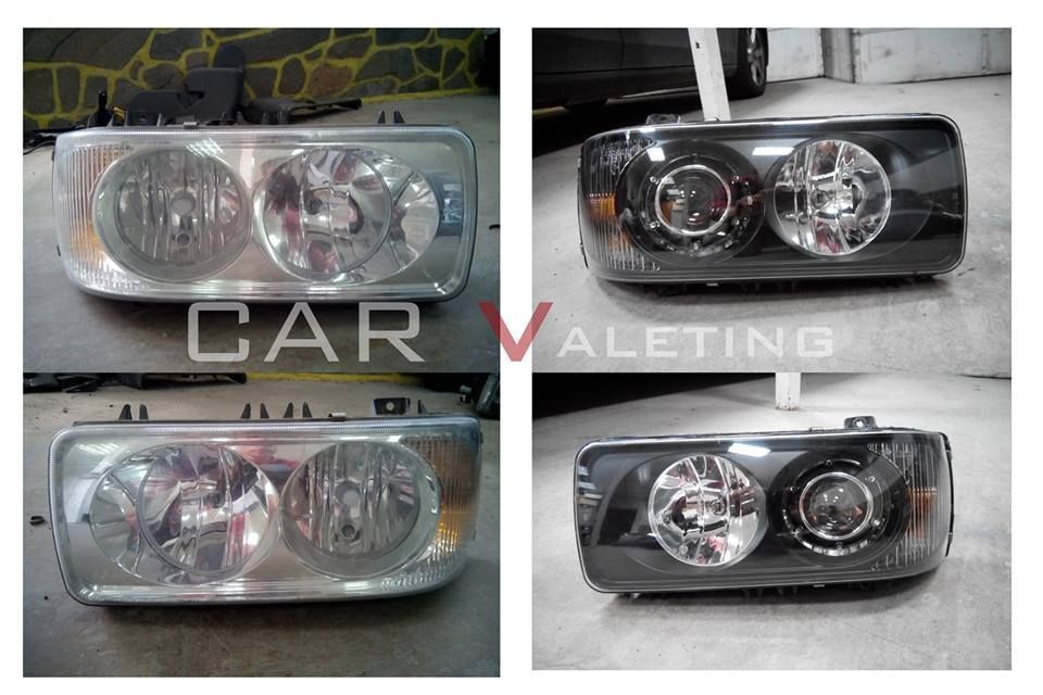 Външната пластмасова фасетана фара се обработва и полира, като се премахва горният изхабен, изгорял отслънцето и наранен от камъчета слой. Един от основните фактори за правилноотразяване на светлината е рефлекторът, чието покритие се захабява с годините. При необходимост се извършва цялосто рециклиране, като със специализирана за целта технология се премахва нагорелият слой и се никелира отново. Лупите са друг основен елемент, който може да се подмени или вгради с добавяне на изцяло нова конструкция и окабеляване. След това се извършва геометрична проекция на хоризонтал и настройки на крива спрямо дълги светлини.