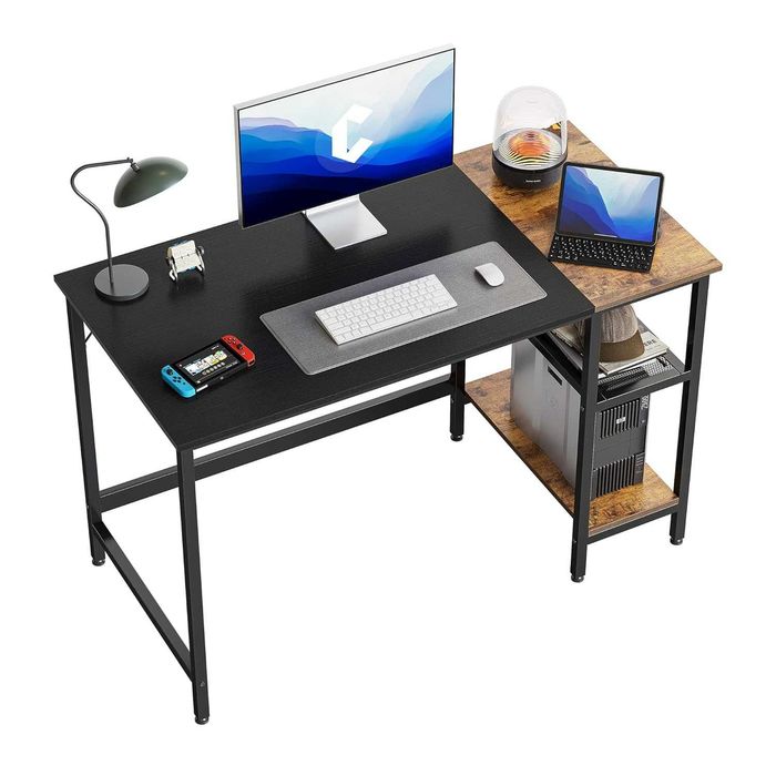 Компютърно бюро за домашен офис CubiCubi, 120 * 60 см Малко бюро Учебна маса за писане с рафтове за съхранение, Модерно просто компютърно бюро със сглобяема дъска, черно/кафяво