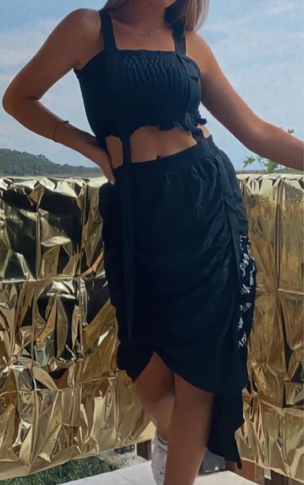 Ефектна черна рокля от две съединени части. Подходяща за специални поводи и вечерни събития. В отлично състояние. За въпроси на лс.