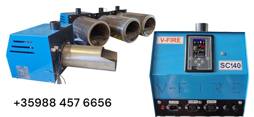 1. Мощност на горелките от 5 до 35 Kw 2. Напълно автоматичен режим на работа 3. Настройка на всички параметри, свързани с управление процеса на горене 4. Поддръжка на дата и час с възможност за програмиране на до три периода в денонощието, в които горелката работи 5. Пълна самодиагностика на хардуера и датчиците. При регистриран проблем се извежда кратко съобщение за причината и ако е необходимо, автоматично се променя режима на работа 6 Автоматично механично почистване подпомагащо безпроблемната работа на горелната. 7 Автоматично регулиране на мощността на три степени за постигане на зададената температура в котела, както и допълнителен режим за временно поддържане на огъня за избягване на цикли на палене и загасяне при временно намаляване необходимостта от енергия 8. Възможност за интерфейсна връзка с РС или GSM/GPRS модем, за дистанционен мониторинг, управление или ъпгрейд на софтуера 9. Управление на помпите /или помпа и ел.магнитен клапан/ на инсталациите за отопление и битова гореща вода 10. Температурен датчик за обратно горене 11. Възможност за включване на стаен термостат и седмичен програматор. 12. Управлението е на български език. За повече информация, моля звъннете на 08******56 Горене на ниско качествени агро/Слънчогледови дори и Сламени пелети и костилки до 20мм .Подвижна скара и механично почистване на главата по време на работа и при всяко ново палене. Главата от неръждаема стомана 4мм. Запалката японска керамична, много бързо запалване и влизане в режим. 4 вида фланци за монтаж според модела котел!!! Включен и външен шнек в цената. Пълна гаранция 1год!!! Цени на пелетни горелки