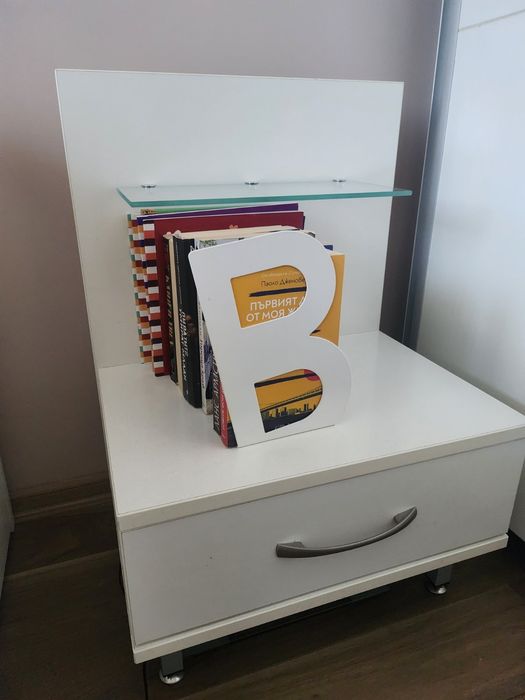 Комплект от 2 бели нощни шкафчета с прозрачна стъклена лавица. Идеални за поставяне на лампи, будилник или други малки предмети до леглото. Изработени са от качествени материали и са в отлично състояние.