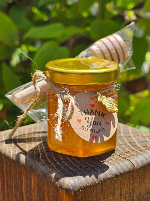 Предлагаме и восъчни свещи от натурален пчелен восък, които също можете да използвате като подаръчета за вашите гости. Можете да ги разгледате в специалната допълнителна обява в профила или да ни пишете.