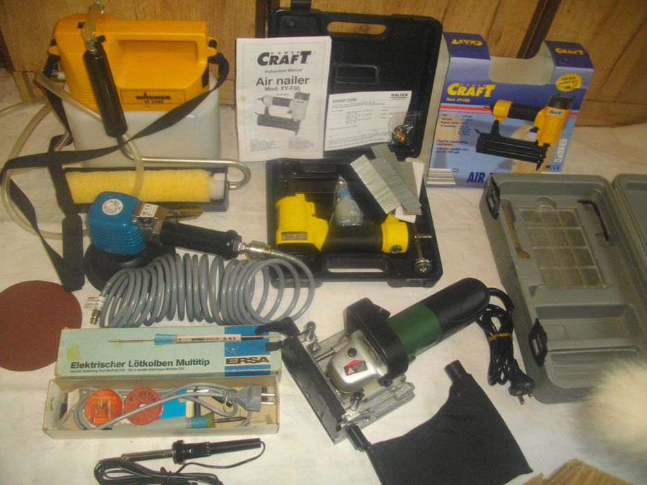 Нов пневматичен такер тип дърводелски тапицерски за пирони 15-50 мм – цена 299 лв. Немски оригинален. Марка и модел Power Craft Mod. XY-F50. Производител WALTER Tools. Налягане 8 bar макс налягане на въздух. Пълен комплект. Съвсем нов, неизползван и неупотребяван. Комплектът включва машшина такер, ново резервно бутало, маслюнка за смазнане пълна, кутия с 5 блистера пирони 50 мм, торбичка с резервни части – адаптер щуцер, няколко гумички различни за буталата и части за главата. Налична техническата документация на машината, заедно с техн.схема. Тегло на такера – 1,4 кг. Размери 255 х 230 х 55 мм. Стоманен корпус и пълнител. Гумирано покритие на дръжката. Пълнител капацитет – 100 бр. пирони. Поставен щуцер бърза връзка за маркуч на компресор. Оригиален пластмасов куфар с логото на марката,, оригинална картонена опаковка над куфара. Размери куфар 260 х 240 х 70 мм. Тегло на всичко – 2,7 кг.