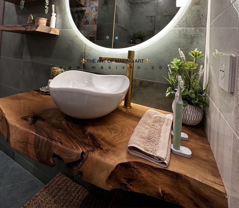 Моля свържете се с мен за да обсъдим подробностите свързани с визията , размера и геометрията на Вашия уникален плот за баня от естествено дърво.
