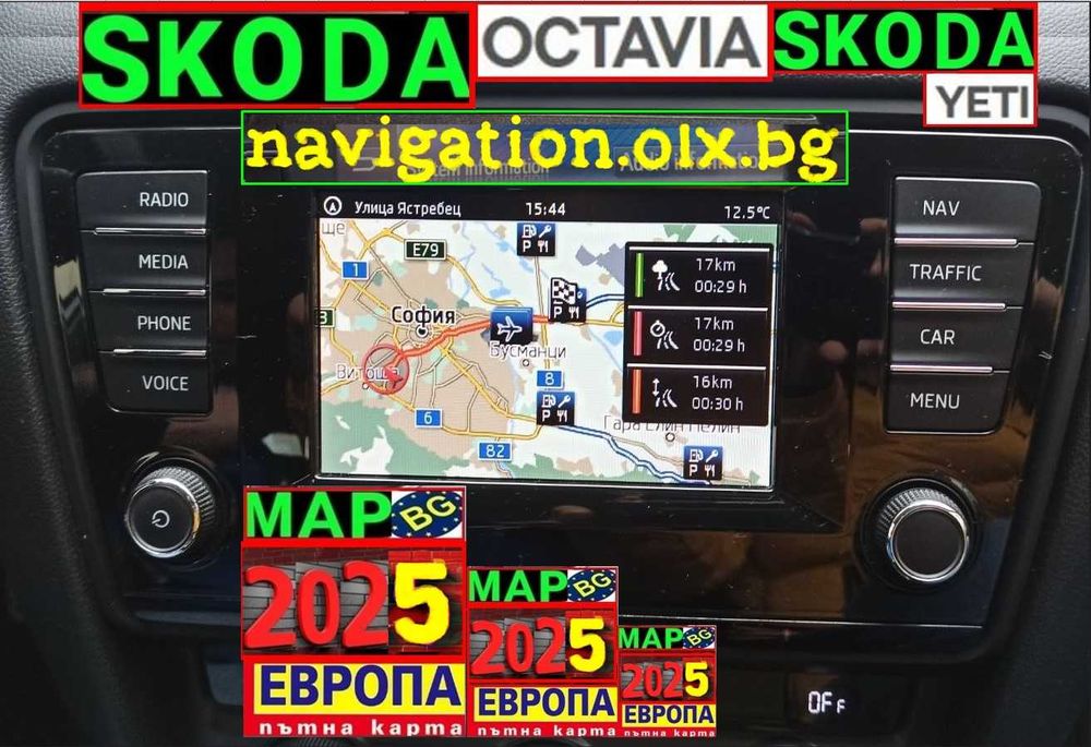 Карти за навигация за Шкода / Skoda (Amundsen) (MIB1) за 2025 година с покритие на цяла Европа, вкл България, Гърция и Турция /Това са мултимедии внедрявани основно в автомобилите на VAG групата в периода 2013 до 2015 края и мултимедията им е със екран с големина 5.8 инча и имат бутон “TRAFFIC” от дясната страна.
