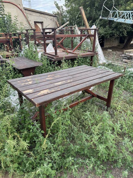 Втора употреба комплект/единични масивни маси, пейки, столове от чам за механа