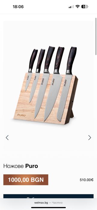 Комплект от висококачествени кухненски ножове Puro, идеални за всекидневна употреба в домашна среда.