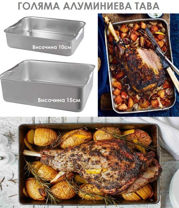 — ГОЛЯМА тава алуминиева за печене на агне, малки прасенца, дивеч, лютеница, височина 10см или 15см – ТОП ЦЕНА – 56.99лв