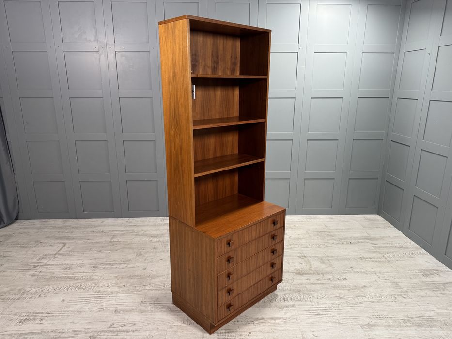 Скрин 5 чекмеджета и надстройка – библиотека от средата на миналия век. Перефектно състояние, внос от Дания.
