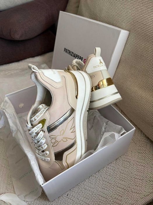 Чисто нови сникерси на марката Patrizia Pepe за момичета. Цветът на обувките е шампанско. Подходящи за пролет и есен.