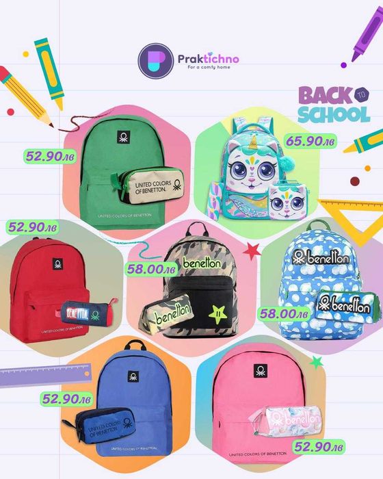 Всичко необходимо за ученика на едно място. Избери новата любима раница, несесер, кутия за храна или други артикули в нашият профил на ПРАКТИЧНО.