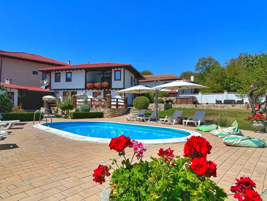 Новопостроена къща на два етажа с отопляем басейн и джакузи, която се намира на 3 км от гр. Елена. Разполага с четири двойни стаи и една тройна стая, всяка от която разполага със собствен санитарен възел+климатик. На първият етаж се намира голяма механа с луксозно оборудвана кухня, а на втория етаж освен стаите има и голяма тераса. Къщата се отоплява на пилети, механата има и подово отопление. Навън има закрито барбекю.