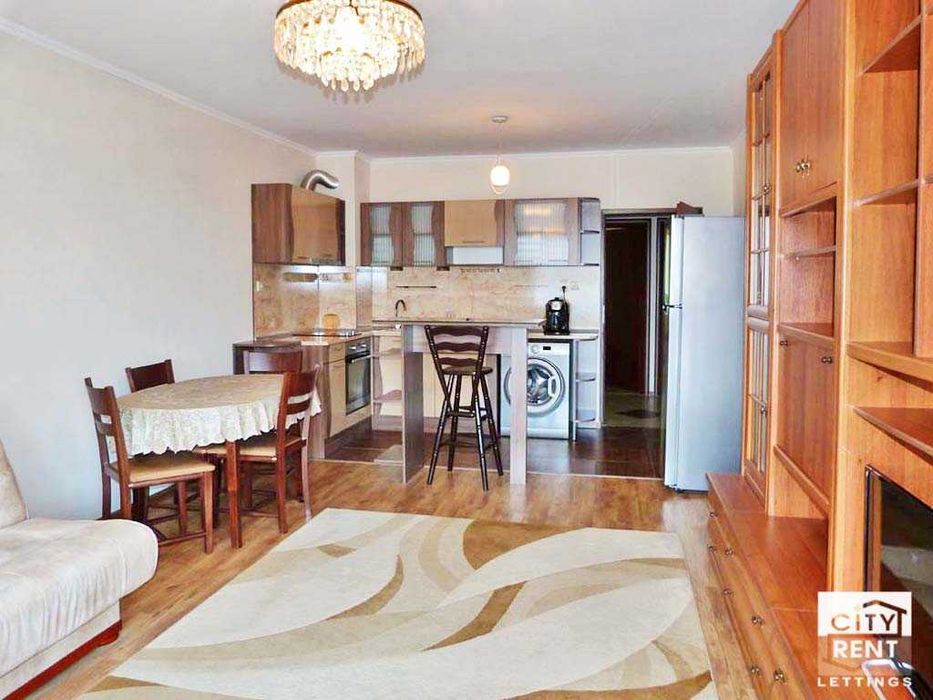 Просторен, готов за живеене обзаведен и оборудван апартамент с две спални, с просторна и светла дневна, разположен в центъра на град Велико Търново. Жилищната площ на апартамента възлиза на 100 кв.м. Разположен е на 3-ти междинен жилищен етаж от нова жилищна сграда, а изложението му е юг/север. Помещава следните стаи: антре, спалня с двойно легло и друга- с две единични легла, просторна и светла дневна с мека мебел, оборудвана кухненска част, обособена зона за хранене с маса и столове, тераса към дневната, баня/ тоалетна.