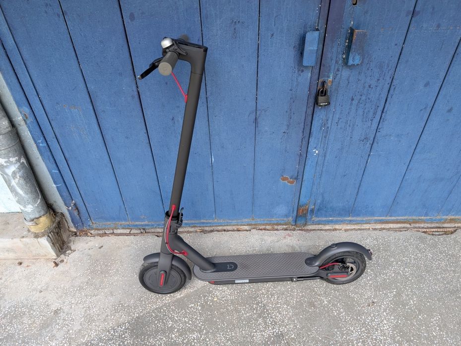 Скутерът е в много добро състояние! Ъпгрейднат е с противоудърна пластмаса от доло и дисплей който показва скорост, оставащ пробег, пробег за сесията, тотален пробег, информация за батерията и др. Също така идва с чифт резервни външни и вътрешни гуми, зарядно и адаптер за лесно помпане на предната гума тъй като винтилът е по-труден за достъп заради мотора в предното колело.