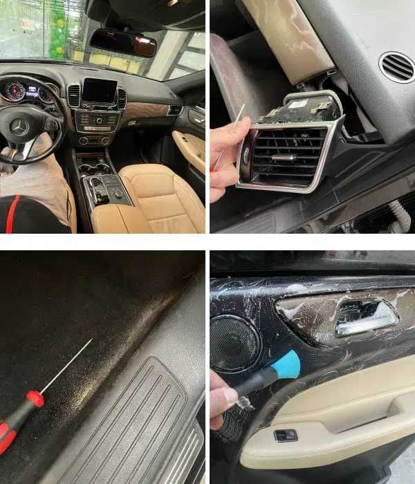 – Разглабяне и смяна на интериорни части – лайсни, въздуховоди, седалки, конзоли, екрани, мокети, подлакътници и тн.