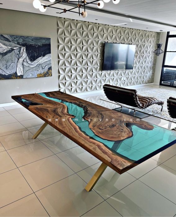 Холни маси от масивно дърво и епоксидна смола: Перфектни за вашата дневна, тези маси съчетават здравината на масивното дърво с естетиката на епоксидната смола.