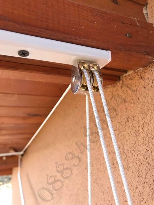 (ДВОЙНАТА РОЛКА предотвратява оплитането на двете въжета и безпроблемна работа на простора при монтиране на закачалката към парапета или стената на помещението)