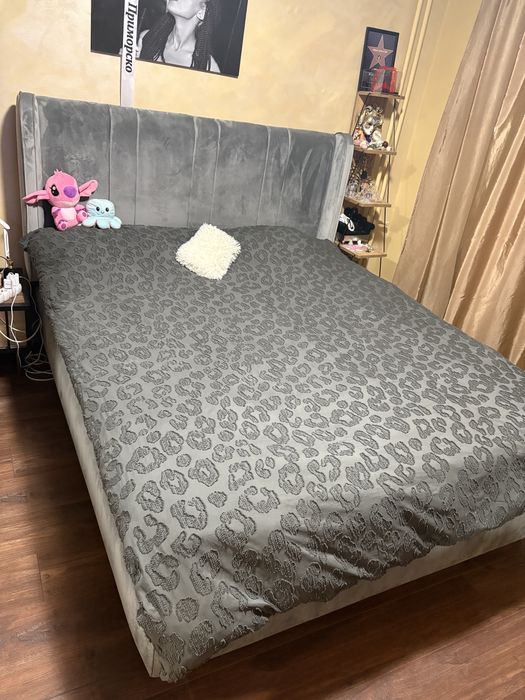 Използвана е 1 година. Леглото е с повдигащ механизьм, а размерьт му е 160/200. Четирикрилен гардероб с пльзгащи врати. Две нощни шкафчета.