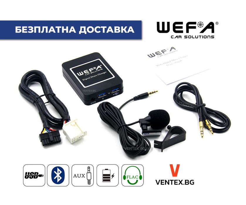 Дигитален чейнджър WEFA WF606 за Honda ви позволява лесно и бързо да свържете смартфона към автомобила чрез Bluetooth, флашка с музика или AUX кабел и да възпроизвеждате музика през аудиосистемата на автомобила.
