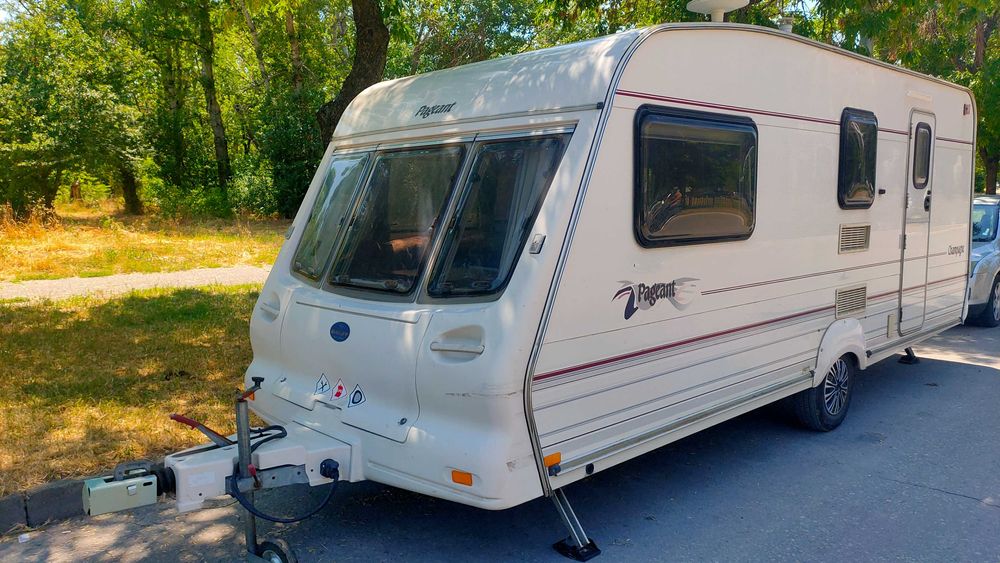 Продавам 4 местна каравана Bailey Pageant Champagne регистрирана в България. Монтирани 2 броя соларни панела, с контролер и допълнителна литиево йонна батерия. Разпределението е следното: отпред двойно сепаре, което става на спалня; в средата готварска печка на газ, мивка, хладилник, газово отопление, двойно сепаре, което става на двуетажно легло; отзад тоалетна, мивка и душ кабина. Караваната има следното оборудване: