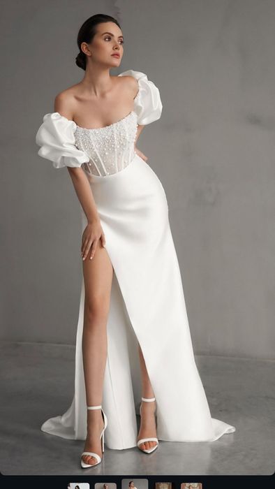 Продавам елегантна сватбена рокля, обличана само веднъж (не е венчана).