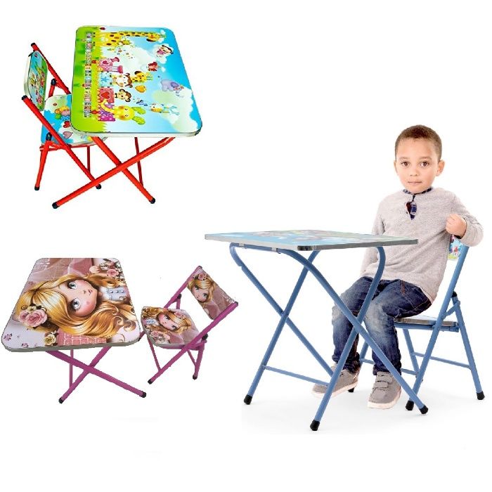Най-новите модели сгъваеми детски комплекти маса + стола с картинки