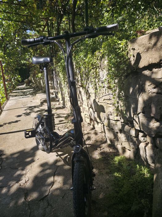 Почти като ново, използвал съм го около 3 седмици. Има забележки от транспортирането, зарядно и много издръжлива батерия – от 60 до 80 км, в зависимост от терена и режимите на каране