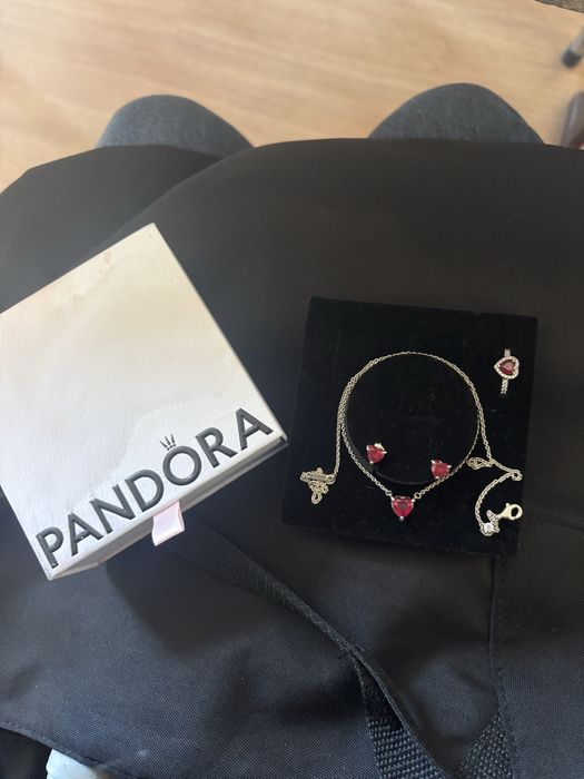 Продавам оригинален комплект Pandora от сребро 925, в отлично състояние с минимални следи от употреба. Стилен и елегантен, подходящ за всеки повод. Мога да ги продам по отделно обеци, гердан и пръстенче, може и целия комплект