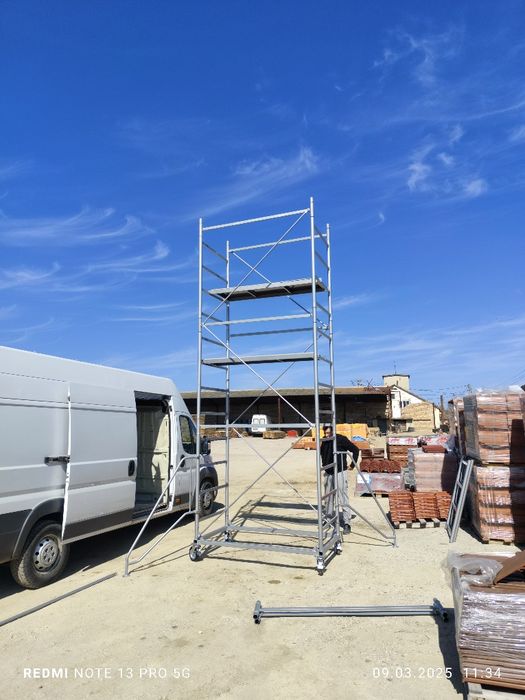 Продавам чисто ново мобилно олекотено скеле, лесно подвижност големи колела със спирачки, лек и здрав метал за по-удобно и бързо сглобяване! Размерът на площадката е 1.00 м. х 1.80 м. Височината на един етаж е 1.50 м. Така работната височина може да бъде по ваше желание 3 м. 4.50 м. 6 м. 7.50 м. и повече според нуждите ви! Две площадки (тясна и широка), които при комбиниране образуват работна платформа 1.00 м х 1.80 м. Скелето е идеално за строително ремонтни дейности както външни така и вътрешни, външна фасада и вътрешни тавани и помещения! Качеството и здравината на скелето е много високо! Обявената цена в обявата е за скеле 7.50 метра работна височина.