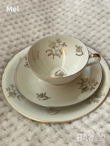 Троен баварски сет със златисти детайли. Порцеланова чаша.