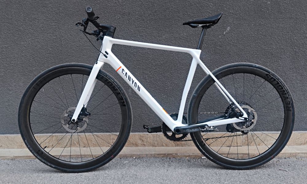 Модел 2024 година , размер на рамката М , подходящ за хора с ръст 170 до 180см , тегло 8кг , състояние отлично в комплекта зарядно за електрическите скорости . Велосипедът е оборудван с : карбонова рамка Canyon Roadlite CF с изцяло интегрирано окабеляване, 1х12 скорости SRAM X01 Eagle AXS електрически и безжични батерията към тях SRAM Powerpack , двубутални хидравлични дискови спирачки TRP R803 висок клас , вилка карбонова олекотена Canyon FK0050 CF SL , курбели карбонови Sram Force 46T , карбонови капли с шини Reynolds AR41 DB 800гр. , главини Canyon GP0197, гуми 28″ Schwalbe G-One Speed 30 mm с протекции , кормило изцяло карбоново Canyon CP04 Cockpit CF , колче на седалката карбоново Canyon S15 VCLS 2.0 CF , седалка Selle Italia Boost ергономична . За повече информация на лично или посочения телефон. Разгледайте и останалите обяви в профила ми разполагам с голямо разнообразие от модели: Canyon Conway KTM Merida Riese and Muller Focus Ghost Specialized Cannondale Bosch E-Bike DH Santa Cruz S-Works Bulls Trek