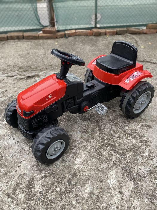 Детски червен трактор с ремарке. Много запазен. Единствената забележка е ремаркето може да се използва и без. Цената може да се коментира.