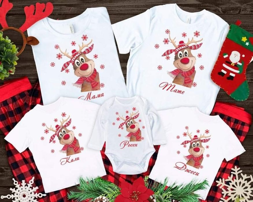 Коледни тениски за цялото семейство и тениски за Вашата фотосесия! Супер бюджетна цена със супер качество и издръжливост на печат! Всички размери от 1 годинка до 5ХЛ тениски и бебешки бодита от 3 месеца до 18месеца! Комплект от семейни коледни тениски с весели изображения. Тениските са изработени от висококачествен материал и са подходящи за цялото семейство. Идеални за празничните дни и за създаване на коледна атмосфера.