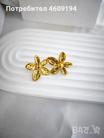 Масивни позлатени обеци от медицинска стомана. Във формата на цвете, на винт.