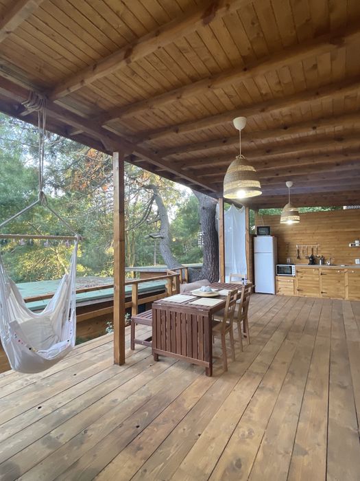 Разполага с две стаи, едната със спалня и еденично легло, втората със спалня и детско двуетажно легло, осигурени са спално бельо, възглавници и олекотени завивки. Молим само да носите собствени кърпи. Голяма веранда с кухненски бокс, обзаведена и оборудвана с трапезарна маса, телевизор, фурна с котлони, хладилник с камера и всички необходими съдове и прибори. Собствена баня с тоалетна. В близост се намират два хранителни магазина, два ресторанта, както и други допълнителни удобства. Домашните Ви любимци също са добре дошли!