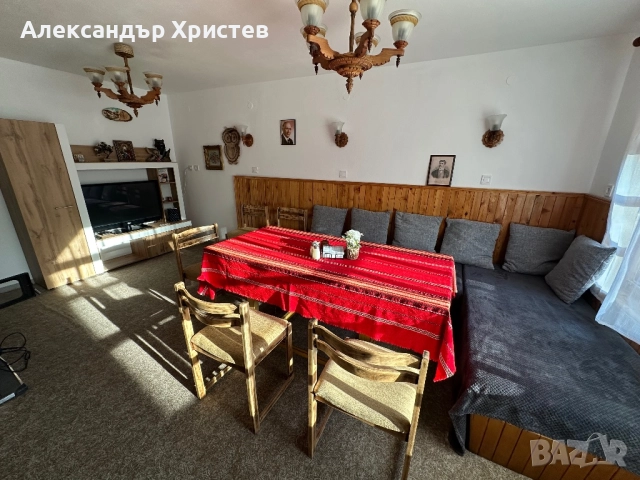 Дневната се отоплява с камина на дърва, а спалните с електрически конвектори. Вилата разполага с общ санитарен възел 🚿🚽(баня и тоалетна). На разположение са пералня със сушилня, ютия и сешоар.