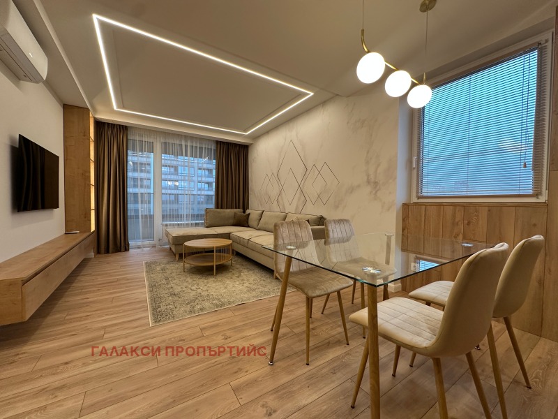 Отдаваме под наем луксозен двустаен апартамент, изпълнен по дизайнерски проект, разположен в престижната сграда Авигея на Артекс един от най-добрите инвеститори и строители в София и България.