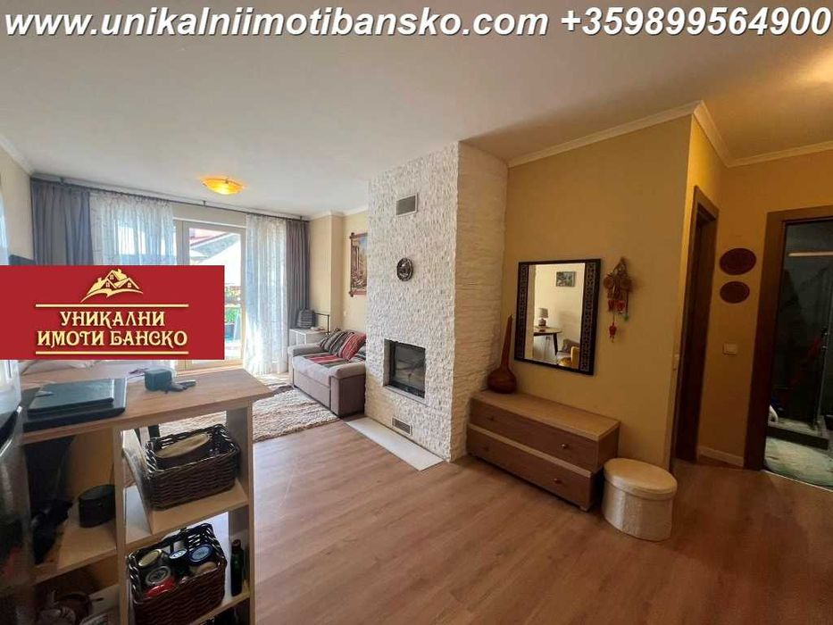 www.unikalniimotibansko.com БЕЗ КОМИСИОННА ОТ КУПУВАЧА! Агенция ’Уникални Имоти Банско’ предлага за продажба НАПЪЛНО ОБЗАВЕДЕН И ГОТОВ ЗА НАНАСЯНЕ ДВУСТАЕН АПАРТАМЕНТ, РАЗПОЛОЖЕН В ЖИЛИЩЕН КОМПЛЕКС С НИСКА ТАКСА ПОДДРЪЖКА! ОТЛИЧНА ЛОКАЦИЯ! ОТДЕЛНИ ПАРТИДИ ЗА ТОК И ВОДА! Апартаментът е разположен на партерен етаж, като е съставен от две стаи – спалня и всекидневна + една баня. Всекидневната е оборудвана с кухненски бокс, под който е поставена трапезна маса със столове, а срещу нея. В стаята има изградена камина на дърва. Спалнята е оборудвана с едно голямо двойно легло и гардероб, като има излаз към тераса, която е обща за двете стаи. Терасата е просторна и от нея се разкрива гледка към планината. Банята разполага с душ кабина и тоалетна. Комплексът се намира в тих и спокоен район, в който красивите гледки са в изобилие, а туристическата зона и лифта са на 10-15 минути разстояние пеша. Страхотна инвестиция в имот, който може да ползвате за постоянно живеене или да отдавате успешно под наем!