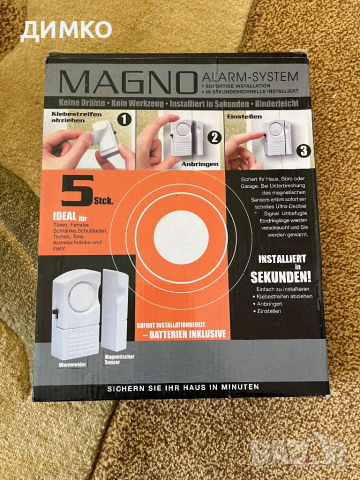 Осигурете къщата си за минути – незабавен монтаж за секунди. Без проводници – без инструменти – много лесен за инсталиране. Обезопасява вашия дом, офис или гараж. Ако магнитният сензор е прекъснат, веднага прозвучава висок ултра-децибелен сигнал. Неоторизираните натрапници ще бъдат изплашени и ще бъдете предупредени. Идеален за обезопасяване на врати, прозорци, шкафове, чекмеджета, сандъци, порти, аптечки и др. Монтира се за секунди: отлепете лепилната лента, прикрепете, регулирайте – готово