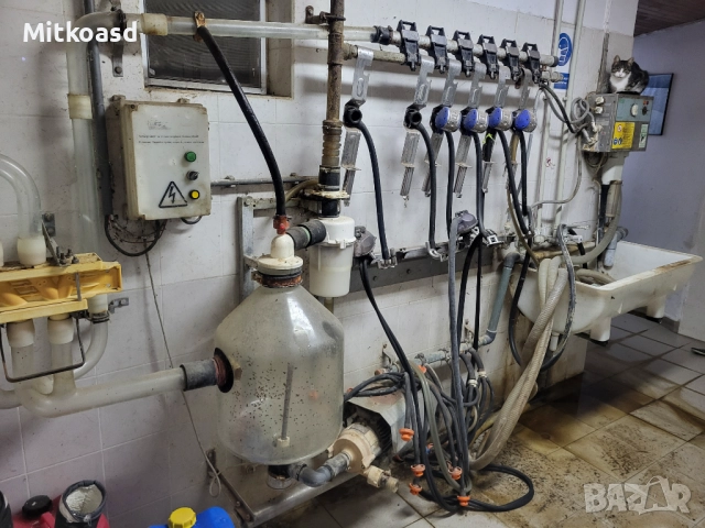 Всичко е налично, с изключение на вакуум Помпата. Продава се поради промяна на технологията и преминаване към доилна зала. Тръбите са стъклени. Миещото устройство е на Westfalia GEA.