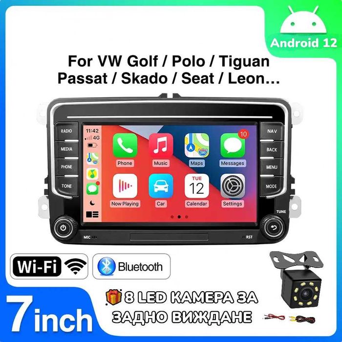 199 лв. – БЕЗ CARPLAY/ANDROIDAUTO – Android 13, CPU:4-ядрен, RAM: 4GB, ROM: 32GB, DVD, DSP