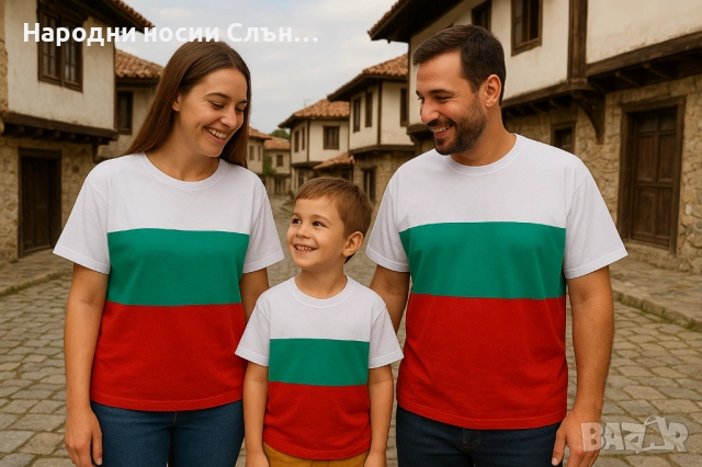 Чудесна памучна тениска ушита в цветовете на българския трикольор.