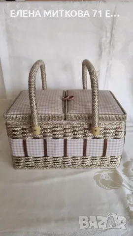 Ретро кутия/куфарче за шивашки принадлежности или друго с двоен капак.Ръчна изработка.Вътре е с мобилно пластмасово рафтче.Размери 27.5/18 см , височина 16 см без дръжките