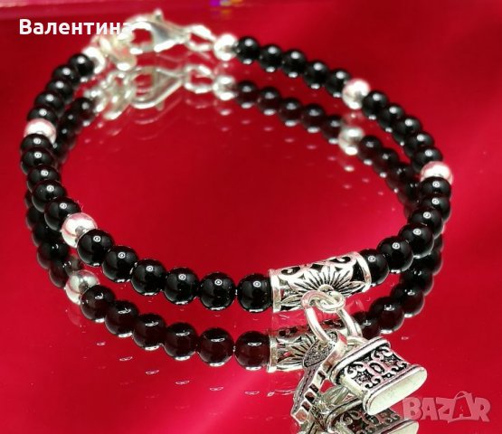 Дамска гривна с оникси и сребърни елементи, катинар с ключ+ ПОДАРЪК → Обява 22264579