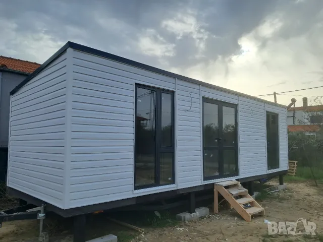 Изработваме по поръчка мобилни и преместваеми къщи с различни размери и възможност за комбиниране на модули. Мобилни къщи върху шаси без нужни строителни документи и преместваеми къщи с разрешение за поставяне. Изцяло дървена конструкция и облицовка по избор. Посочената цена се отнася до преместваема къща с размери 10х3 метра и облицовка от винилов сайдинг. Същият вариант с включено шаси с регистрация в КАТ ще струва 35900 лв.